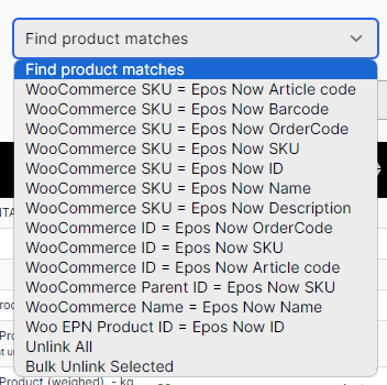 When you are first getting started, you may have products on both WooCommerce and EposNow and before the sync can be switched on, the Woo products that exist on EposNow need to be linked so that when the syncs switch on, there are no duplicates.