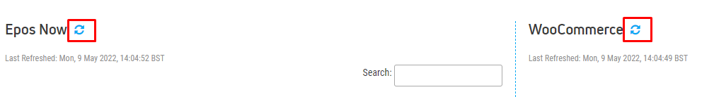 To link the categories, first refresh the categories from EposNow and WooCommerce using the blue refresh icons.
