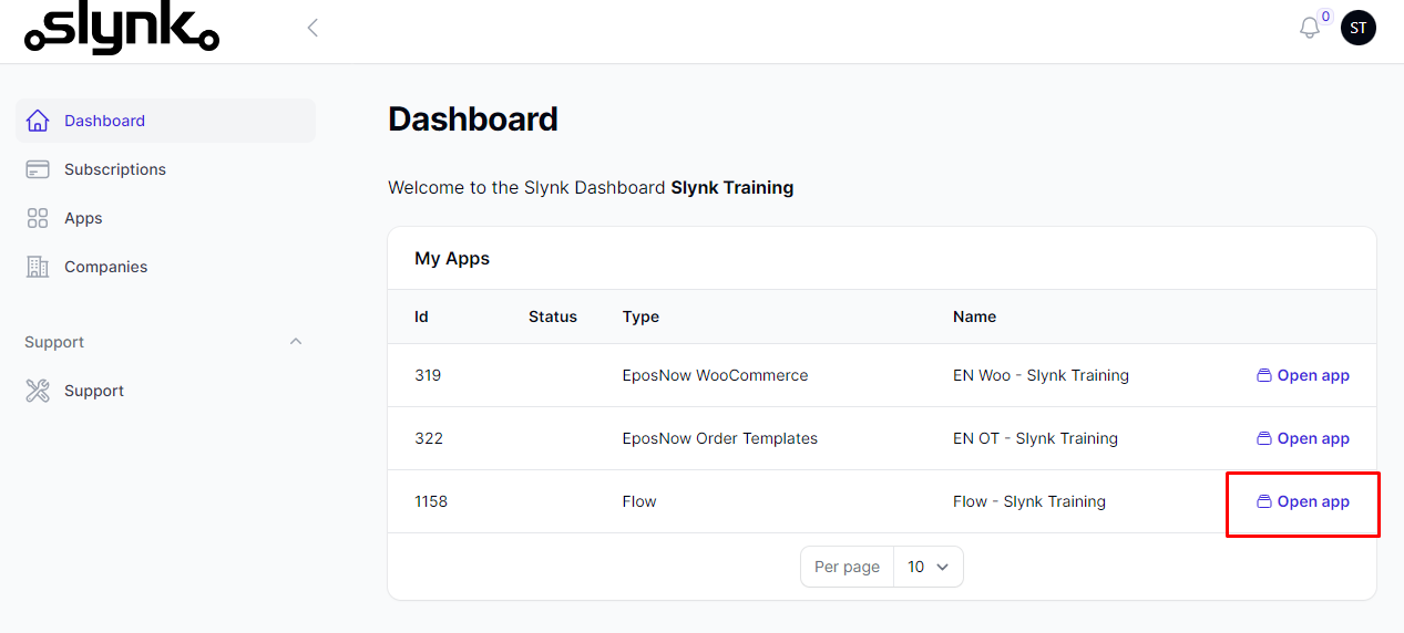 - Log in to the Slynk dashboard.