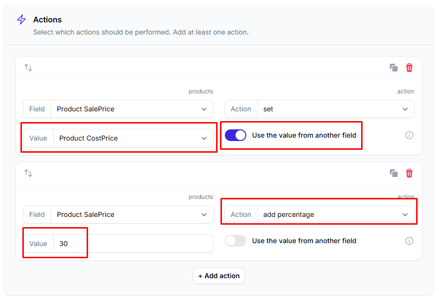 - Add the actions that should be applied.